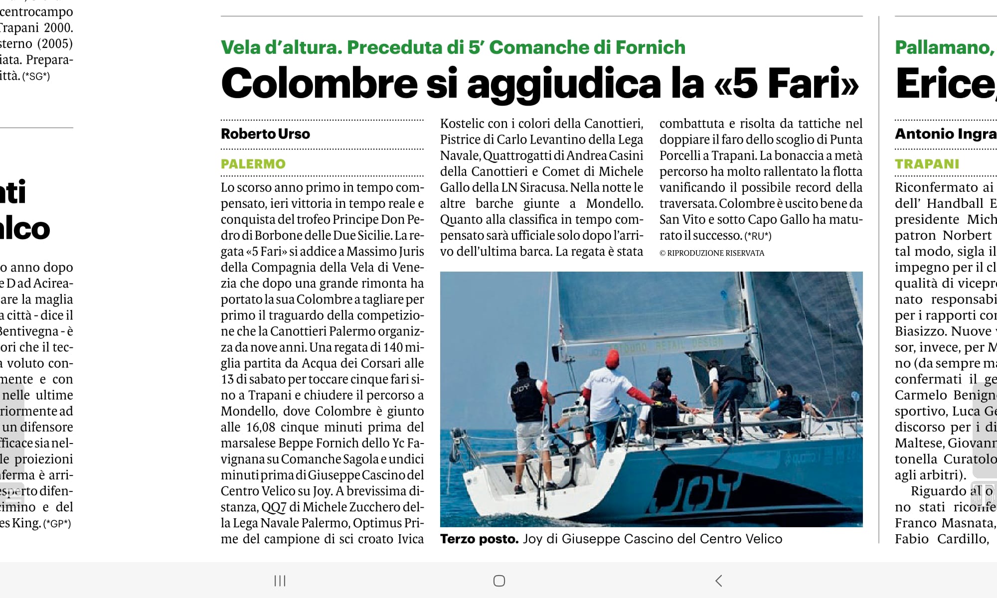| REGATA DEI CINQUE FARI Overall Palermo 08/07/2023 – 10/07/2023 |